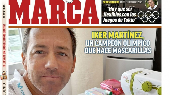 Skipper espanhol campeão olímpico produz máscaras. Saiu no MARCA