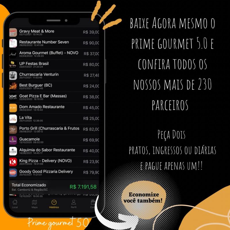 O aplicativo de descontos Prime Gourmet é um sucesso absoluto em Balneário Camboriú e região. São mais de 26 mil usuários e mais de 270 estabelecimentos cadastrados, oferecendo aos assinantes um poder de economia que pode ultrapassar R$ 20 mil.