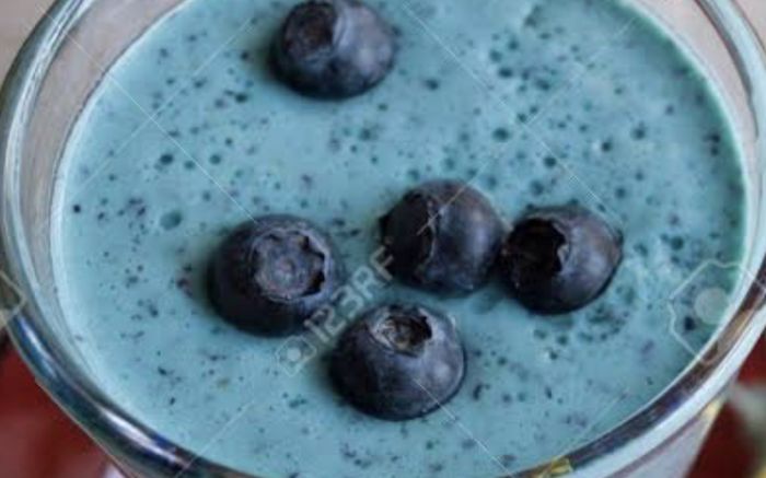 Bata o inhame e a banana com mixer e ou liquidificador e depois o restante dos ingredientes. Faça a mistura de forma rápida para não perder o ponto, se for necessário ajuste ao seu paladar. Após coloque em uma travessa, polvilhando mirtilos. Fonte de nutrientes e proteínas, experimente associar a Spirulina no seu cardápio diário! Procure um profissional para ajustar sua dose!