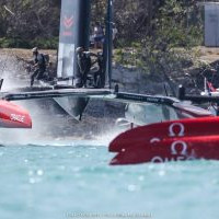 O penúltimo duelo do dia foi a reedição da America's Cup 2013 entre Estados Unidos e Nova Zelândia. O ORACLE USA largou melhor, mas as pedaladas dos kiwis igualaram o duelo até um contorno de boia, onde uma quase batida entre os catamarãs foi pior para os kiwis, que perderam a prova.