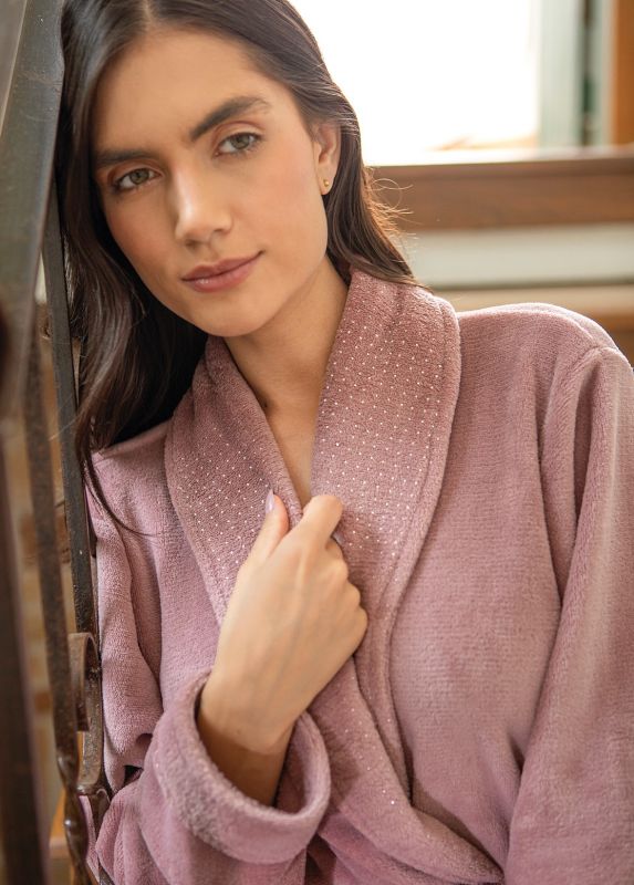 Para completar o enxoval, a Toalhas Atlântica possui três modelos de roupões diferentes em microfibra. O roupão Pompom com capuz, mangas longas e detalhes de pompons. Em um tom mais discreto, o Glam, em rosê, possui detalhes de glitter na gola, bolso e punhos. E o roupão com golas e pulsos de pelos, disponível também em tamanho infantil.