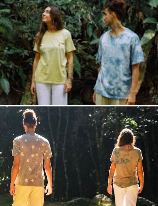 Tudo foi feito na Reserva Luz da Mata que também serviu de inspiração para criação das peças que foram tingidas naturalmente com coloração vinda de plantas como a casca de romã, eucalipto, crajirú e indigo. Passa lá na loja da praia Brava para ver que legal ficou a criatividade talentosa da Jana. Parabéns!
