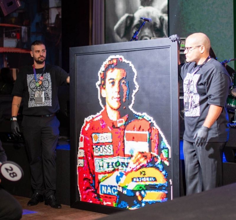 O evento teve como um dos destaques a obra do artista e empresário catarinense Robson Ferreira (foto acima), que arrecadou a impressionante soma de R$ 140 mil com a venda de um quadro único, tornando-se o maior lance para uma obra de arte do acontecimento. A obra de Robson é uma imagem do piloto Ayrton Senna criada inteiramente com 30 mil peças de Lego.