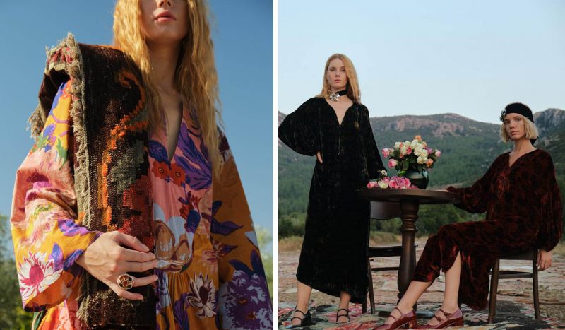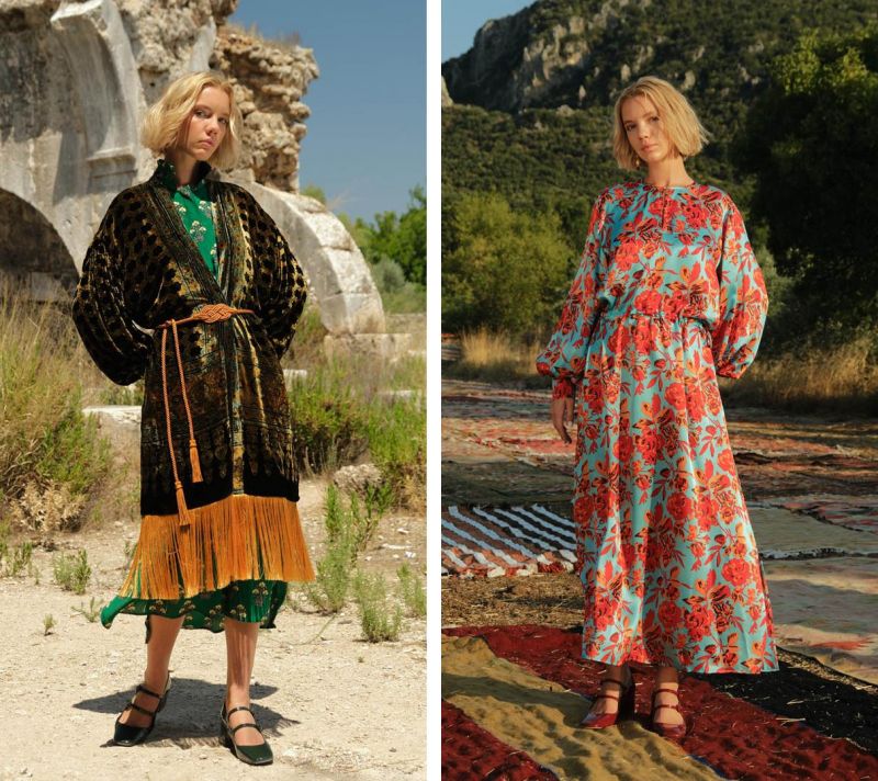 A coleção revisita diversos padrões florais simbólicos que significam proteção, abundância e ligação com a terra. Milhares destes tapetes estendidos sob o sol, nos campos abertos de Antália, surgem em vestidos, casacos e lenços em seda e veludo de seda compostos por bordados minuciosos e brocados luminosos, peças marcadas pela cartografia sensorial de texturas genuínas. O grande destaque da coleção são as estampas que foram desenvolvidas através da técnica do silk screen em 12 telas. Cada processo foi cuidadosamente pensado e 100% artesanal, afirmando a linguagem da marca sobre o que foi feito à mão.