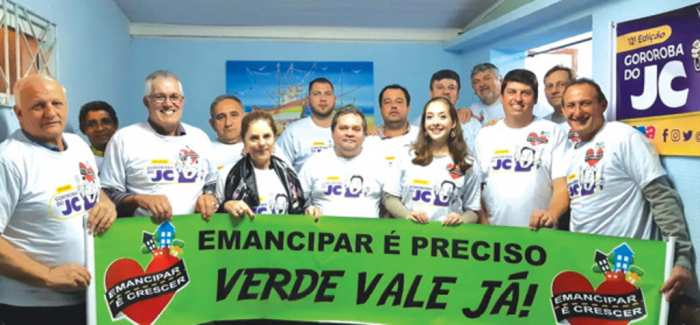 Os empresários e políticos, Vandelino Raimondi e o narigudo ex-secretário de Obras, Tarcísio Zanelatto, também abraçaram a causa. Eles pegaram no pau da bandeira, digo da faixa, pedindo a emancipação. Até o padre Rufino da paróquia de São Pedro na Itaipava, se engajou e abençoou o movimento que cobra acima de tudo ação em prol da zona rural.