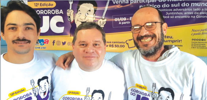 O candidato a deputado federal, Jorge Goetten (PR), visitou a choupana pra estar presente na Gororoba. Disse que tem ficado feliz com a adesão espontânea à candidatura em todos os rincões de Santa Catarina. Jorge tem percorrido o estado ese desdobrado nas trocentas reuniões que lhe convidam pra estar presente.