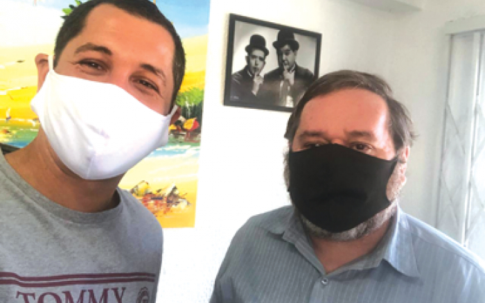 O coordenador dos candidatos a vereador da coligação do atucanado Robson Coelho (PSDB), o vice, o bonzinho Edson Lapa (PSL), e o vereador futebolista e presidente do Podemos, Nikolas Reis, fizeram uma visita de cortesia ao pançudo escriba.