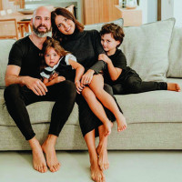Momento total comfy dos queridos Raphael Meneguetti e Luana, com os filhos Maria Antonia e Enrico