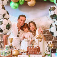 Os 4 anos do Bê que comemorou, no melhor estilo futebol, com seus pais Thiago Casas e Monicke Sandri