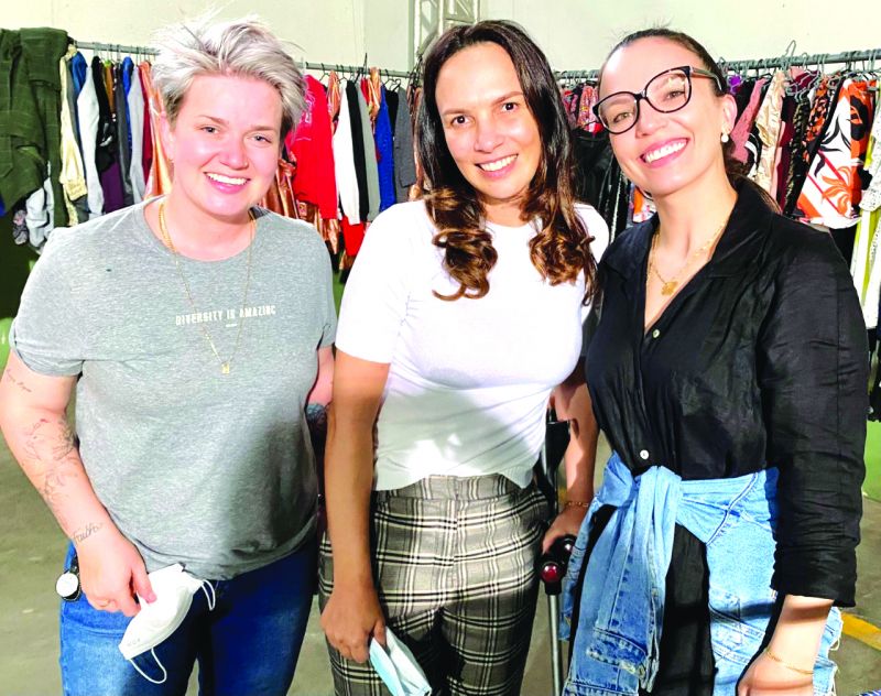 DJ Sheila, com as manas Andrea Hang e Ana Paula, no Bazar da Colcci.