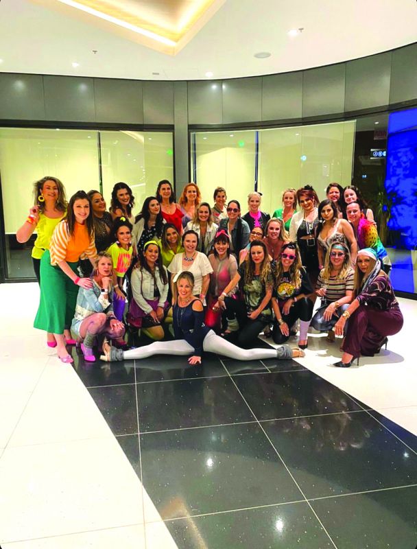 As meninas do grupo de networking ‘Cola em nós que é sucesso’ confraternizando em clima de anos 80. O agito rolou no Terrazza Praia Brava