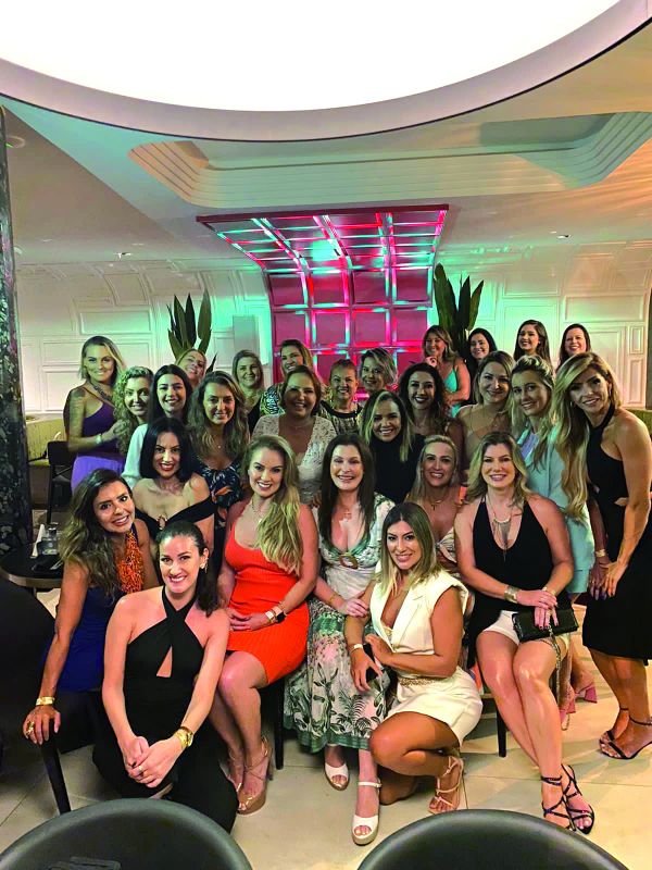 As meninas do Cola Em Nós Que É Sucesso festejando os três anos do grupo de networking feminino. O jantar e baladinha rolou no Quatro7, de frente para o mar.