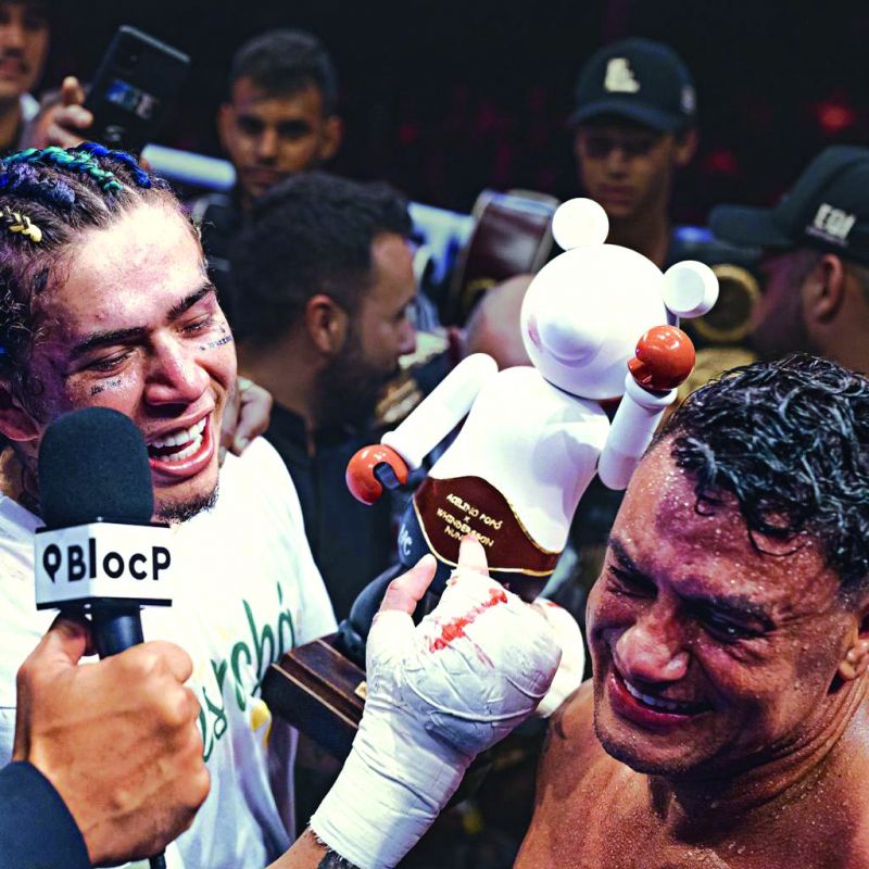 Ainda sobre a luta entre Whindersson Nunes e Popó, que rolou em BC Beach e parou o Brasil. A foto ilustra os lutadores recebendo uma escultura personalizada da PNDA na versão lutador de boxe