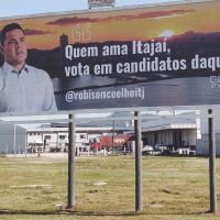 No fim da semana que passou, o povão da city pexêra se deparou com outdoors espalhados em pontos estratégicos. Nas peças publicitárias, a mensagem dizia “Quem ama Itajaí vota em candidatos daqui”. Ao lado da frase, uma foto e a assinatura do ex-vereador e ex-candidato à prefeito Robison Coelho (sem partido).