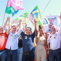 Apoiado por candidatos, militantes e simpatizantes, o coordenador da campanha Lula e Décio na Santa & Bela Catarina, Gelson Merisio, participou do ato no centrão da capital.