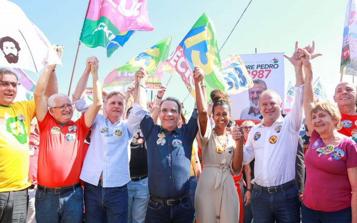 Em São José, a concentração começou cedo no calçadão do bairro Kobrasol, com adesivos, bandeiras e caminhada junto com os candidatos da região. Em seguida, o candidato ao governo Décio Lima, junto com a vice Bia Vargas, e o candidato ao Senado Dário Berger pediram voto no centro da capital manezinha.