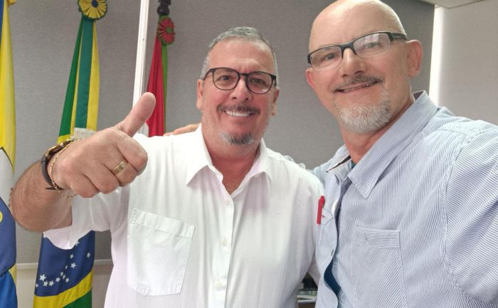 Estiveram reunidos o presidente do PT de Itajaí, carequinha Gerd Klotz, e o vice-prefeito Marcelo Saldré, ops, Sodré, presidente do PDT local. O encontro se deu no gabinete de Marcelo. Foi uma visita de cordialidade entre os dois dirigentes partidários onde relembraram por mais de duas horas fatos e acontecimentos da história recente da política itajaiense vivenciados pelos dois mandatários.