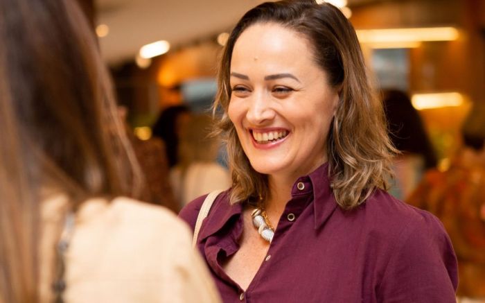 A arquiteta Karol Stolf prestigiando o evento Boss Conectando