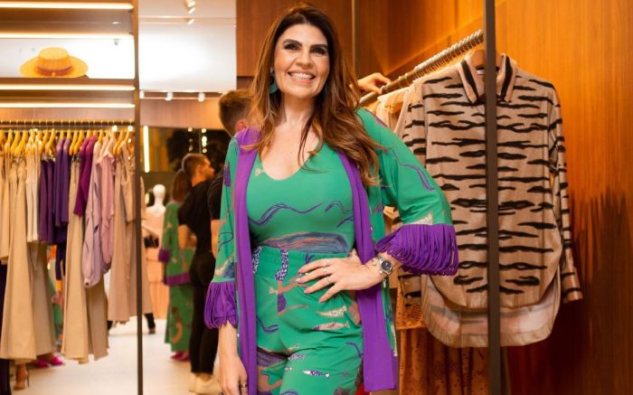 A produtora de moda Mirella Ribeiro em evento fashion no litoral