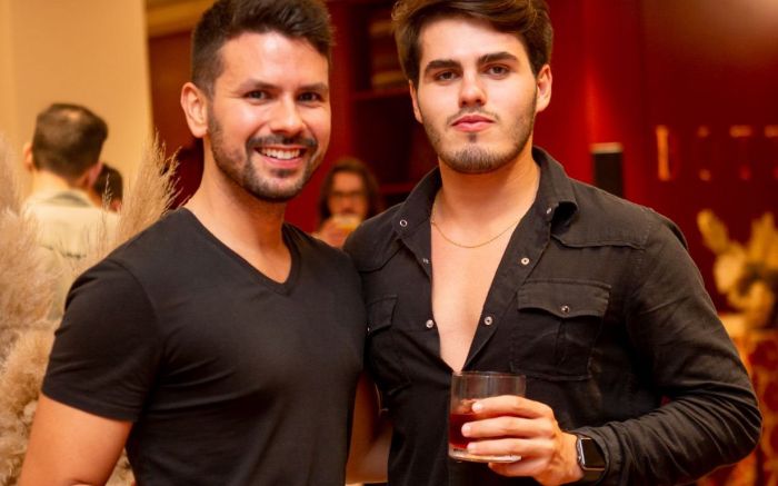 Lucas Garcia e Leonardo Wiederkehr brindando a amizade com drinques da Liquid