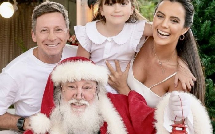 Andre e Jaque em comemoração natalina com a filha Leonor Xavier Castro.
