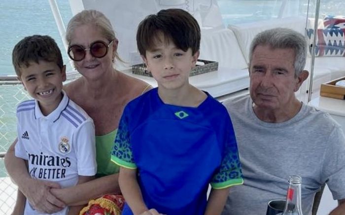 Paulo Ávila e Claudia, com os netos Frederico e Otávio, navegando
