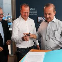 O prefeito Volnei Morastoni (MDB), o secretário de estado do Turismo, Evandro Neiva, e o governador Jorginho Mello (PL) estão unidos pra manter a The Ocean Race em Itajaí