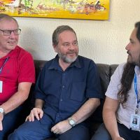 O secretário de Comunicação da prefa do outro lado da vala, em Navega City, Aldo Decker, o diretor da pasta, Rodrigo Ramos, mais conhecido por Jesus, por conta do cabelão e cara de Cristo, e a jornalista Andrea Artigas visitaram o socadinho escriba.
