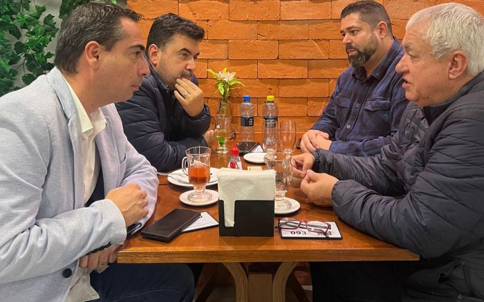 O vereador licenciado e secretário de Obras e presidente do União Brasil Dedé Gonçalves; o presidente do PL, baixinho Denísio Dolásio Baixo; o encapetado presidente do PSC, Fabinho Rezes; o ex-vereador entisicado Fernando Pegorini (PSD) e os dissidentes do Republicanos estiveram presentes.