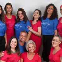 De azul as coordenadoras Fátima Casini, Eliana Monteiro e Patrícia Vieira, com esse time bacana de voluntários.