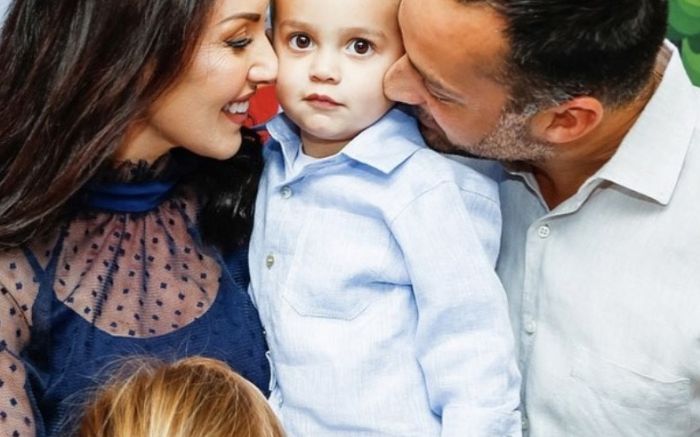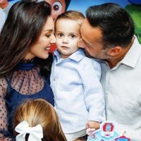 Carol Graciola e os filhos Marthina e Lorenzo comemorando o niver do papai Neto Bellini