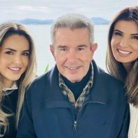 Feliz da vida, na ‘sua’ praia da Armação, Paulo Ávila, com as filhas Roberta e Mylene