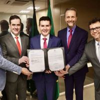 Foi assinada a ordem de serviço para operação de saneamento integrado e Parque Linear do nosso valão menor, o rio Itajaí-mirim, na city pexêra. O evento contou com a presença do ministro das Cidades, Jader Filho.