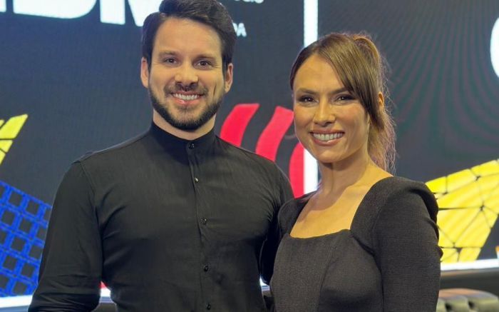 O advogado Alan Coletto, presidente da Comissão de Direito da Moda e Propriedade Intelectual da OAB de Balneário Camboriú, prestigiou mais uma edição do evento O Negócio da Moda. A feira de negócios reuniu grandes players da indústria da moda e palestrantes que falaram sobre temas como empreendedorismo, inovação, sustentabilidade, inteligência artificial e valorização da moda brasileira.  Alan Coletto com a palestrante Patricia Bonaldi, fundadora da grife PatBO (foto: divulgação)