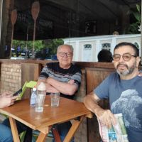 O povo da Cocada na city pexêra, os ex-bagrões Tito Arruda, Carlos Rebello, Ivan Macagnan e Julianinho, fofocando, digo, discutindo o futuro de Itajaí