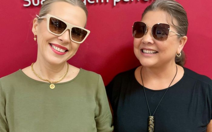 As jornalistas Samara Toth Vieira e Franciele Marcon, com a anfitriã do Brava Mall, Miriam Pinheiro, quarta-feira, na comemoração de um ano do Cristofori Piano Bar