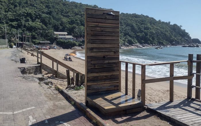 O chuveiro da saída de praia que nativos e turistas usavam pra tirar a areia e o sal do couro, após os banhos de mar, voltou a funcionar, e algumas madeiras do deque que estavam detonadas foram arrumadas. Ainda falta o corrimão e degraus nas escadas para facilitar o acesso, mas melhorou bastante apenas com o básico.