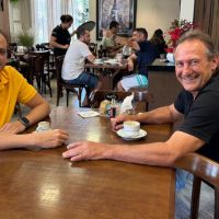Os presidentes do Partido Progressista, Tarcísio Zanelatto e do MDB, Wilson Rebello Júnior, o Rebelinho, se encontraram pra um café e botar o papo em dia. O taliano Zanelatto tem cumprido a promessa de conversar com todos os dirigentes de siglas, em Itajaí.