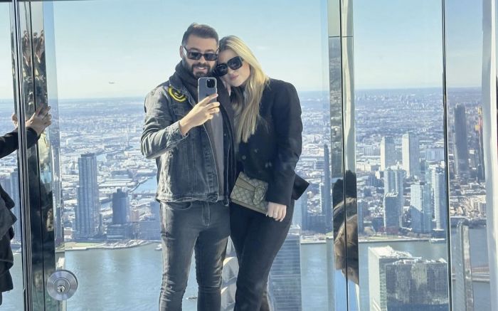 Nas alturas, o casal Tais Leite e Jeison Luis Imhof, de Balneário Camboriú, curtindo um passeio por Nova Iorque (Foto: