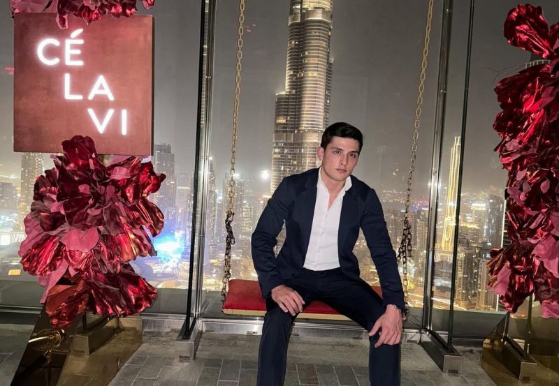 Cé La Vi Romulo Hendges, de Itajaí, de férias em Dubai. A foto é no badalado restaurante Cé La Vi (Foto: Arquivo pessoal)