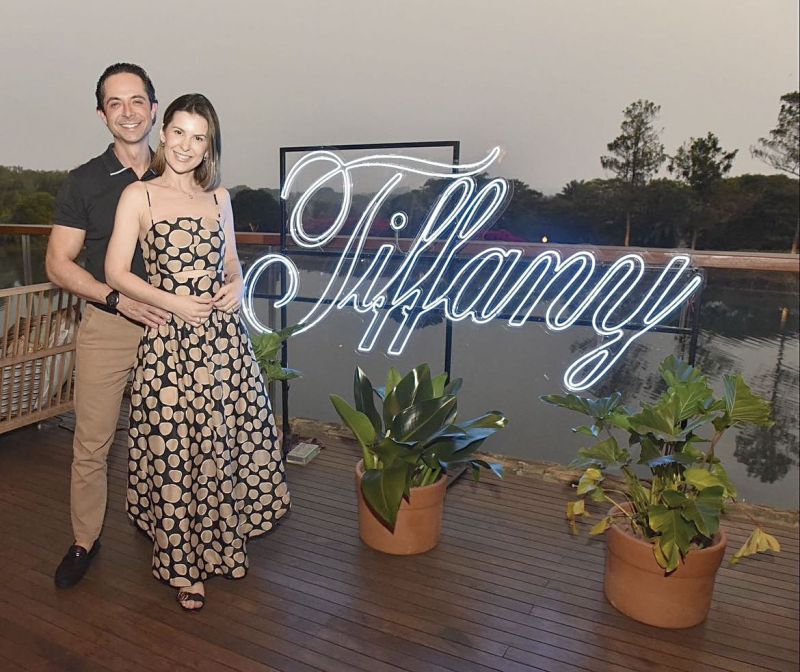 Os empresários João Marlezio Conhaqui e Paula Daniela Gessele Conhaqui durante o evento que apresentou a coleção exclusiva do designer francês Jean Schlumberger, promovido pela joalheria Tiffany & Co
