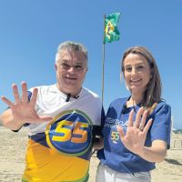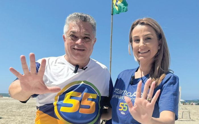 A candidata a prefeita musa da confusão, Juliana Pavan (PSD), com o prefeito de Chapecó, João Rodrigues (PSD), em BC. Foto: Divulgação)