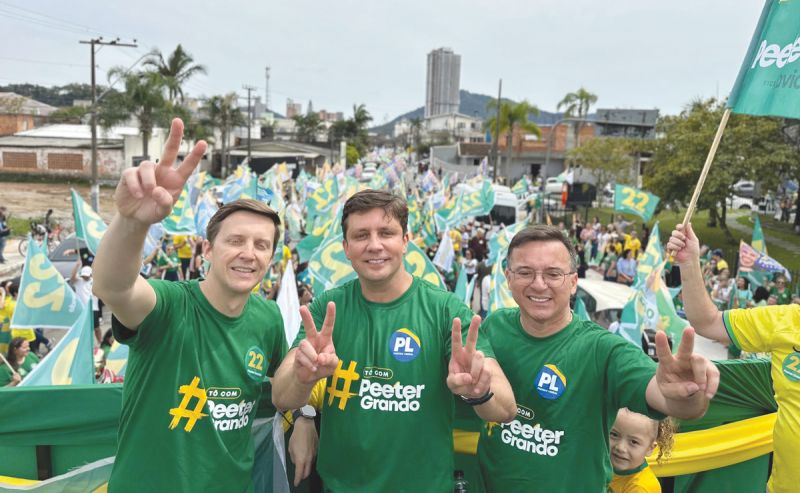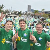 O candidato Peeter Grando, o Fabrício da Shopee (PL), caminhou com uma multidão em BC (Foto: Divulgação)