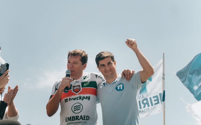 O candidato a prefeito de BC, André Meirinho (PP), recebeu o apoio do candidato a prefeito de Camboriú, Edson Piriquito (MDB) (Foto: Divulgação)