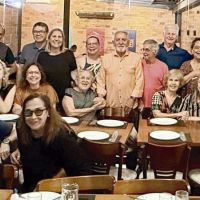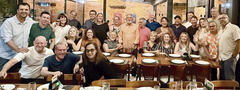 Na última quinta, com os amigos queridos pioneiros da comunicação da terrinha, pois juntos montamos, colocamos no ar e inauguramos há 38 anos, para Itajaí, todo o Vale e Planalto Norte de SC, uma emissora, a TV Vale do Itajaí que hoje é a NDTV Record. A “noite dos dinos” foi feliz do começo ao fim, cheia de histórias para recordar e dos melhores abraços. Valeu! Anderson, Eduardo, Graça, Gilmar, China, Tânia, Evo, Vilmo, Betinho, Alberi, Vânia, Godoy, Raul, Sandro, Zulmira, Luizão, Edisinho e Padilha. Sentados: Cynthia, Chris, Bel, Renilda, Monique e Dary. Agachados: Meneghetti, Eládio, eu e tinha mais gente que não está no click: Marcos Porto, Luciene e Vanderley