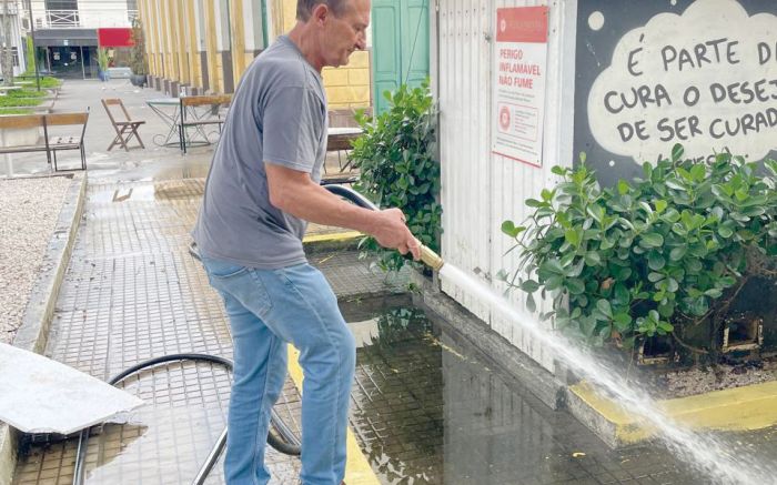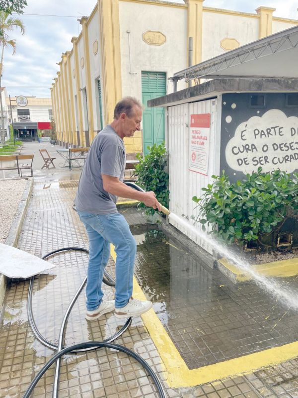 Quem foi visto perto das seis da matina do último sábado lavando os arredores do Mercado Público foi o futuro secretário de Obras da city pexêra, o narigudo Tarcísio Zanelatto. E que, segundo os bocas de tramela, a situação do mercado público não é das melhores e precisa de um carinho especial para poder receber, principalmente, os turistas que nessa época do ano são muitos.