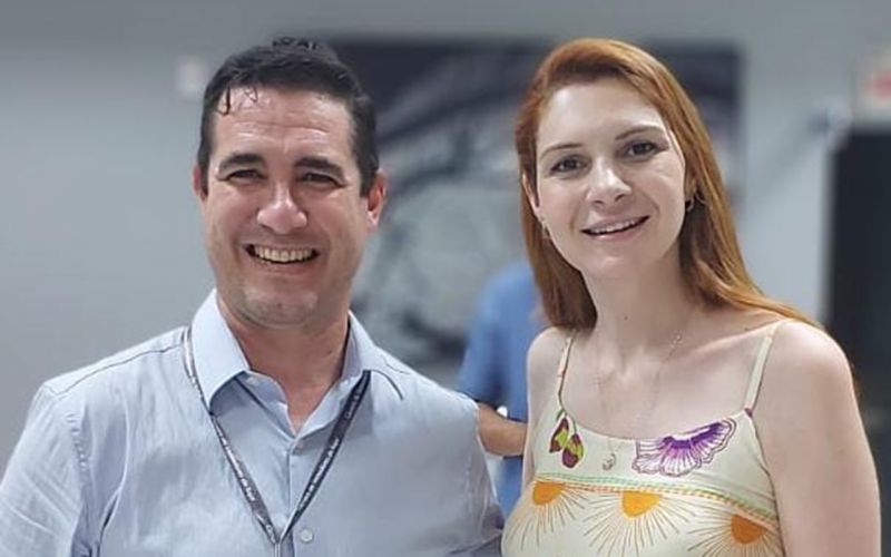 Ficou prosa! O advogado e assessor da piramidal, Leandro Hahn, o Milhouse, com a deputada estadual Ana Campagnolo (PL) (Foto: Divulgação)