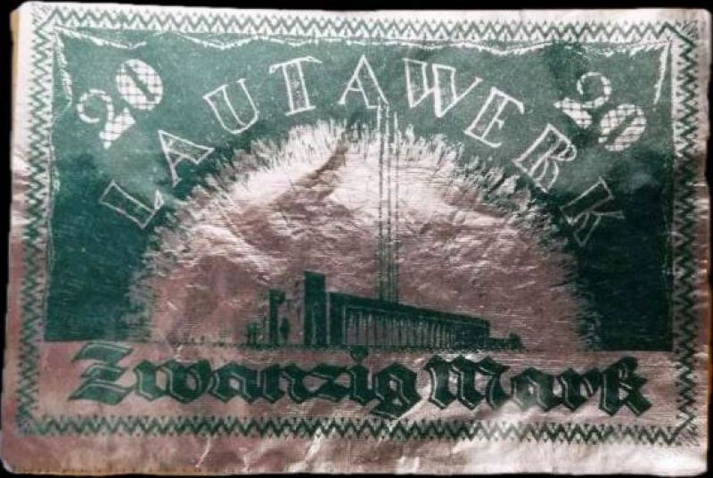 • Alumínio: Extremamente raros, os Notgelds de Lautawerk foram impressos em papel alumínio.