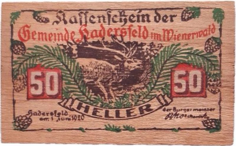 • Madeira: Na Áustria, também houve emissões em madeira, como os Notgelds com valor facial de Heller.