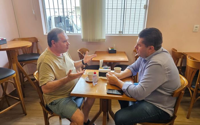 “O prefeito pediu e eu sou o maior interessado”, fala o secretário de Assistência Social de Itajaí, Léo Severino, sobre o seu apoio à pré-candidatura de Anna Carolina à Alesc, ao visitar o JC